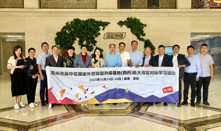 2023年10月24-28日,吴中区医药行业商会组织苏州市吴中区国家外贸转型升级基地(西药)内部分骨干企业负责人赴大湾区珠海、深圳等地对标学习。本次活动得到了吴中区商务局的大力支持,区商务局领导亲临珠海,带队学习,并参加了与珠海市国家外贸转型升级基地(生物医药)工作站联合举办的“国家外贸转型升级基地工作交流会”。