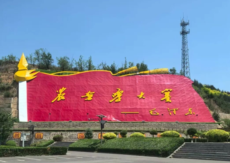 走进大寨展览馆,仿佛翻阅一部鲜活的奋斗史。展厅里,锈迹斑斑的锄头、磨损的蓑衣、泛黄的老照片,还有按比例还原的“七沟八梁一面坡”旧貌模型,“铁娘子战斗队”“虎头山下二兄弟”的事迹介绍。一个个鲜活的名字,一段段感人的故事,把大家拉回了那个艰苦奋斗的年代。