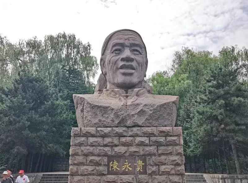 “今天站在这里,才真正懂了‘一把锄头刨出希望’的韧劲。”站在陈永贵塑像前,会员们心怀敬意、驻足凝视。陈永贵墓地环境庄重肃穆,周围的松柏挺拔苍翠,仿佛在静静诉说着这位老书记带领大寨人战天斗地的往事。