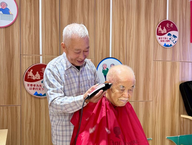 阳光苑社区日间照料中心的理发服务让90多岁的寿星老人不出社区,就能享受清爽造型。