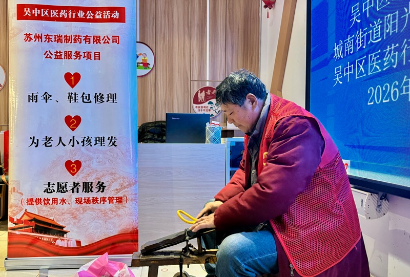 苏州东瑞制药有限公司的“便民维修角”人气爆棚,磨刀师傅的精工让锈迹斑斑的刀剪重焕锋利,让居民迎接过年。