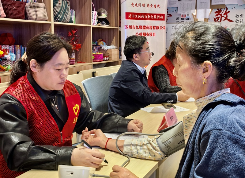 在健康服务上,尽显行业专业优势。苏州市号外大药房、苏州市九顺堂药房分别为居民测量血压、检测血糖,帮助居民做好慢性病管理,树立科学保健理念。