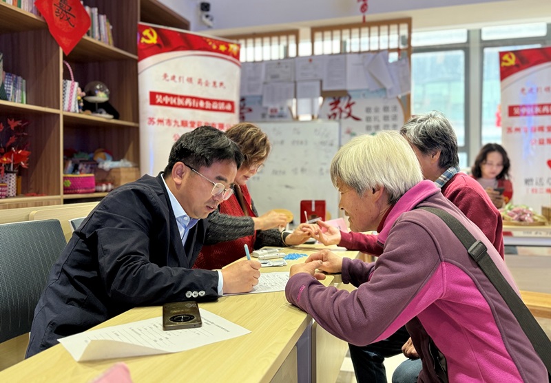 在生活便民上,苏州东瑞制药有限公司志愿者团队带来了磨菜刀、修鞋、修包等服务;阳光苑社区日间照料中心提供理发服务。志愿者细致周到的服务,获得阳光苑社区居民一致称赞。