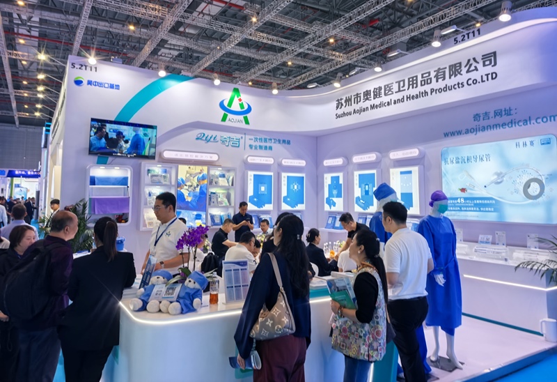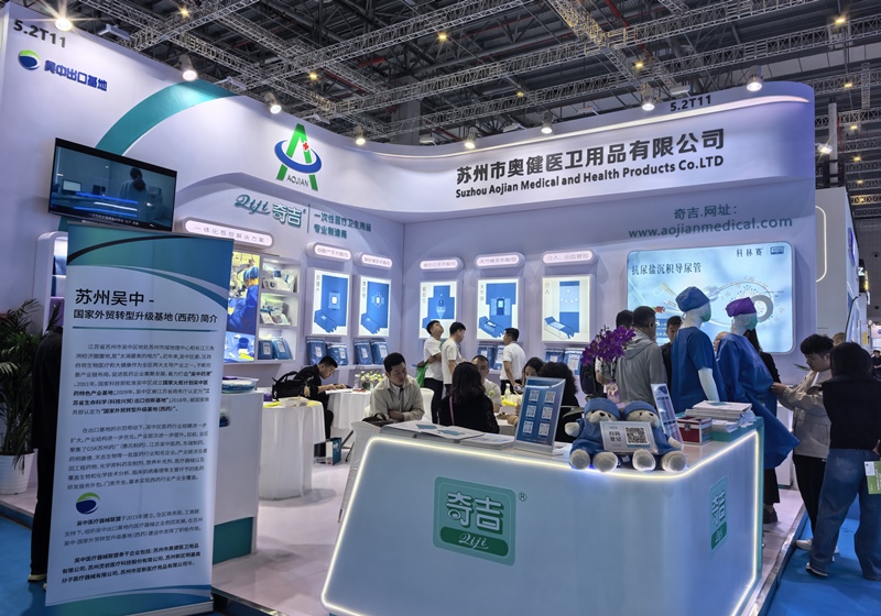 苏州市奥健医卫用品有限公司深耕医用耗材领域三十多年,聚焦临床感控与泌尿护理等核心场景,打造了覆盖手术防护、伤口护理、临床基础护理、泌尿导尿管等全品类产品矩阵。其中,科林赛抗尿盐沉积导尿管作为核心主推产品,凭借可长效留置、有效减少尿盐沉积、降低尿路感染风险等突出优势,收获大量关注与认可;同时,专科专用手术膜、手术包、介入包、一体化感控防护系列产品,也凭借人性化设计与高品质性能,获得现场客户的一致好评。展会期间,公司销售与市场团队以专业细致的讲解,全面展示了企业的研发实力、生产工艺与产品应用优势,进一步提升了“奇吉”品牌在行业内的知名度。