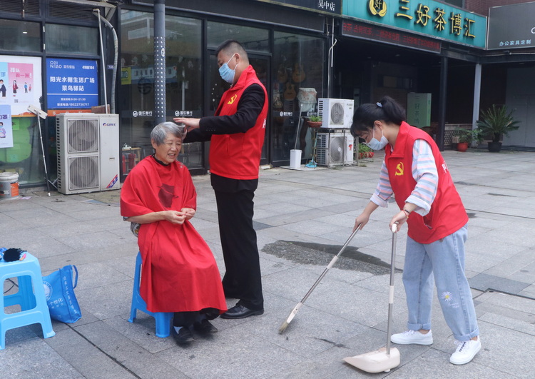 苏州市澹台湖大酒店党支部委派美发总监陆师傅、党务文员小张到场参加公益活动。陆师傅手艺高超、态度和气,前来理发的居民一个接一个,他连水也顾不上喝一口。时近10点半,有位阿姨问:“活动是否结束?”陆师傅欣然表示:“没关系,您坐!”他重新从包里拿出工具,替阿姨剪发。小张虽是第一次参加“党建引领 药企惠民”公益活动,但她热情主动,活动结束时,把整片场地扫得干干净净。