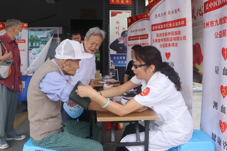 苏州市吴中区临湖久博堂中西药店有限公司、苏州市九顺堂药房有限公司两位经理每次都到场为居民测血糖、测血压,已经有了固定的服务对象,大部分都是老年人。这次服务38人,38人都有后续服务的意向,与志愿者相约下个月16日见。