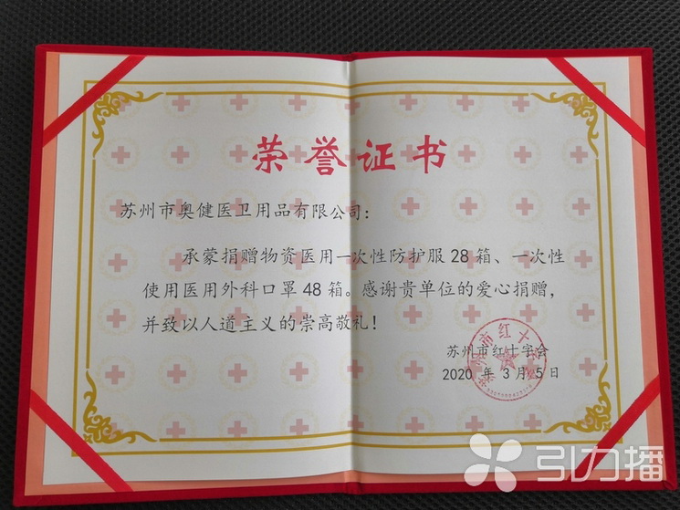 在原材料全面告急、用工极度紧张的局面下,奥健医卫硬是从供不应求的产品中,拨出了价值超过30万元的700件医用防护服和96000只医用外科口罩,通过苏州市红十字会,定向捐赠给苏州大市范围内的全部19家三级医院。