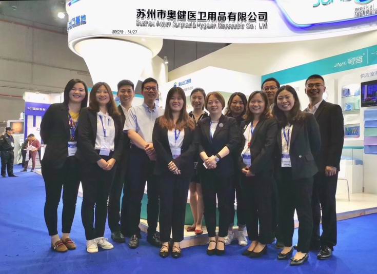 苏州奥健医卫用品有限公司、苏州灵岩医疗科技股份有限公司在主展馆中心位置搭建了高水准、大面积的整体联合展台。“吴中医疗”LOGO和“吴中出口基地”六个大字醒目地标注在展台正中上方,成为本届博览会的新亮点。联合展位洽谈室墙面上是吴中区医药产业及吴中医疗器械联盟的巨幅简介;展位两侧,以色调区分企业,苏州奥健医卫的整体风格蓝白色调,苏州灵岩医疗整体风格橙白色调,冷暖色调结合,赏心悦目。