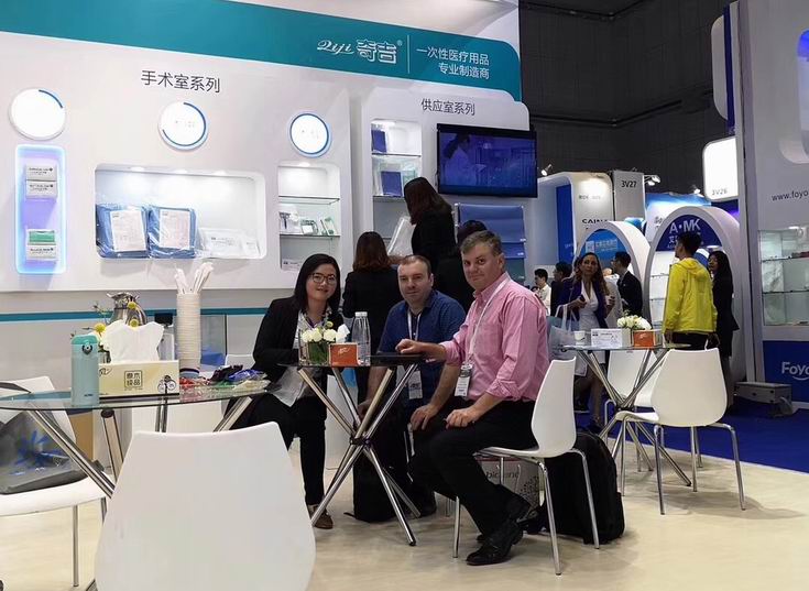 苏州新区明基高分子医疗器械有限公司许锋总经理在展台亲自接待了印尼老客户,印尼客户对明基高分子医疗的产品质量与在临床中的运用效果给予高度评价和认可。
