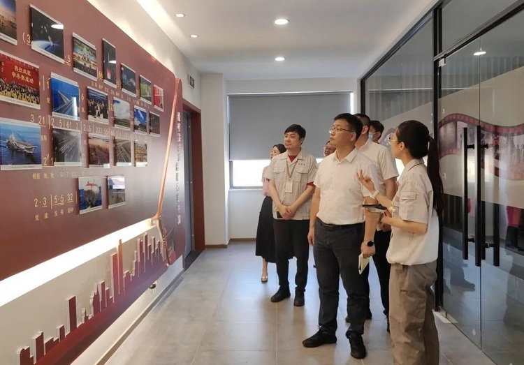 镇领导参观质检区、百草园之后,来到春晖堂党建文化馆。党建文化馆展板上记录了七十多年来苏州的变化、中共苏州党史片段和春晖堂党员活动的照片。许钱华总经理、沈婷副总经理向秦晓良书记一行汇报了春晖堂药业创始人许福弟艰苦创业的事迹和企业党建及工青妇工作情况。