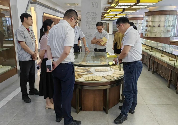 在苏州市春晖堂药业有限公司总经理许钱华、副总经理沈婷陪同下,秦晓良书记一行来到春晖堂中药文化馆,了解中药发展历程和名人事迹,参观馆中陈列着的各类中医药古籍和中草药标本,参观期间许钱华总经理向镇领导汇报春晖堂在弘扬中医药文化、普及中医药知识等方面所做的工作。